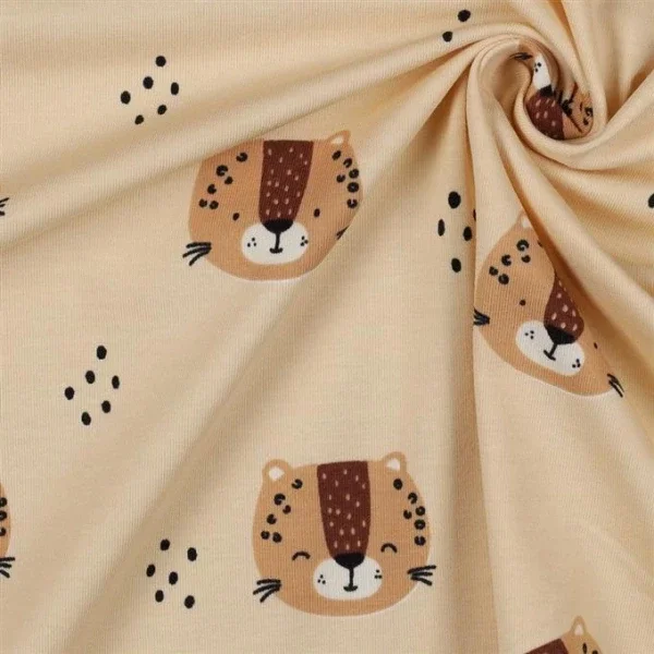 Baumwolljersey süsse Leopardenköpfe - cremebeige