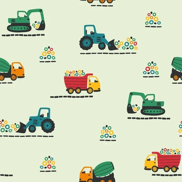 Baumwolljersey bunte Baufahrzeuge softmint