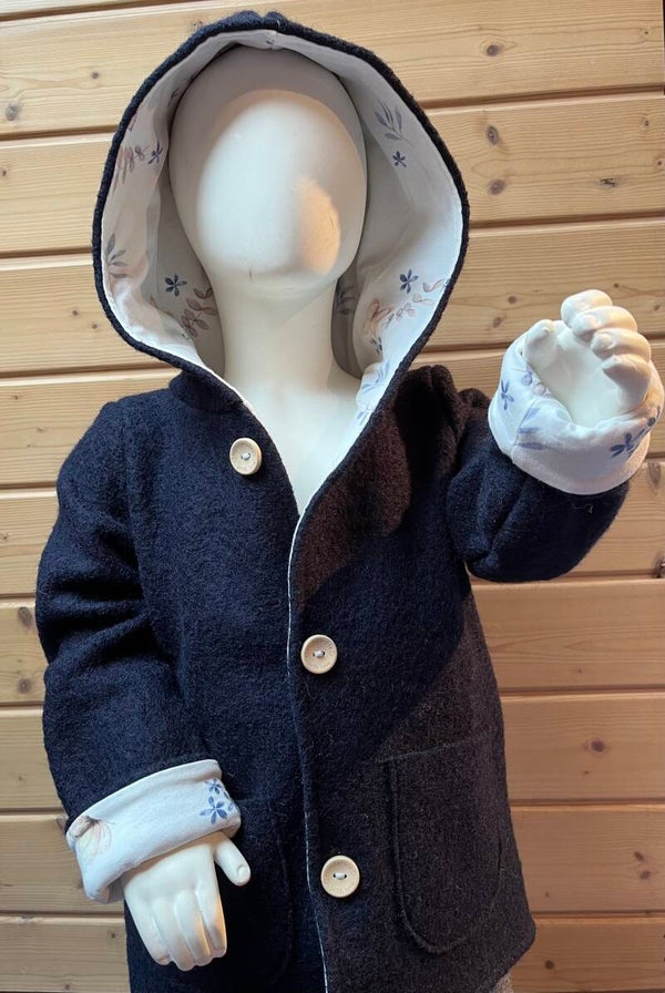 Traumhaft schöne Walkjacke aus 100% Wolle mit einem Baumwolljersey als Innenfutter. Verschliessbar mit Holzköpfe.