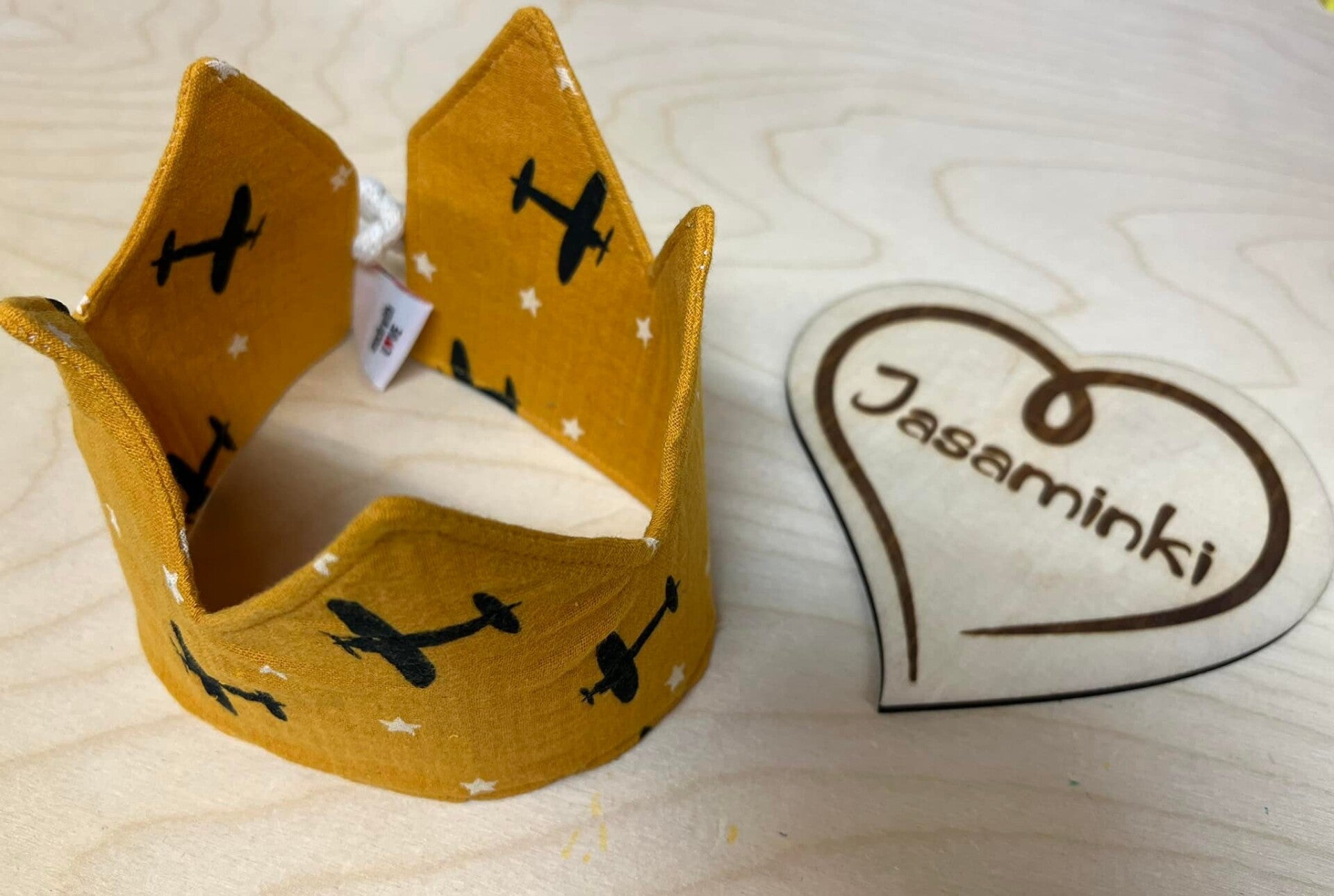 Geburtstags Krone Musselin Senfgelb Flugzeug