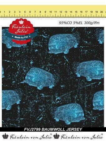 Baumwolljersey VW Bus Schwarz/Blau