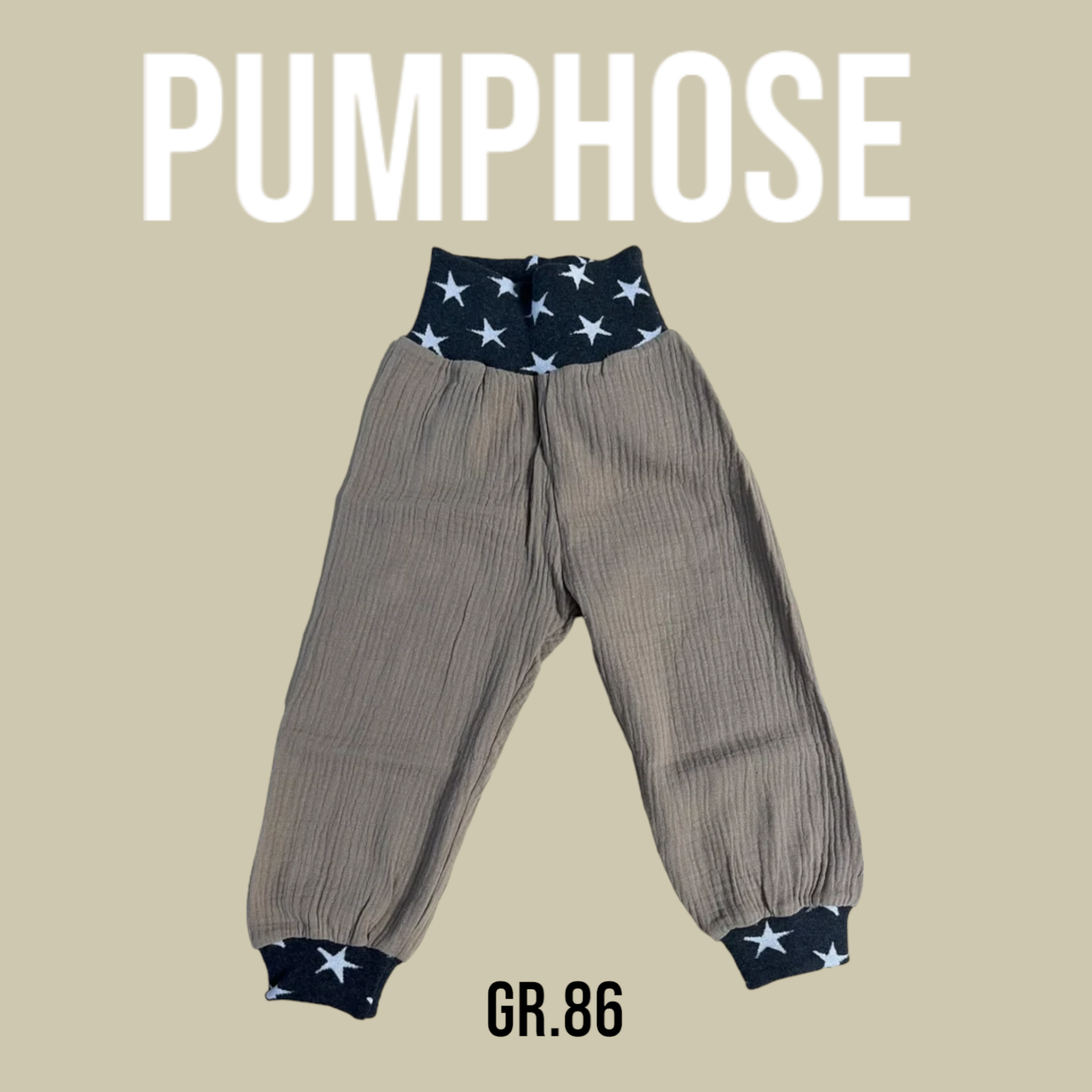 Pumphose Musselin Beige Uni mit Sternen Bündchen Gr.86