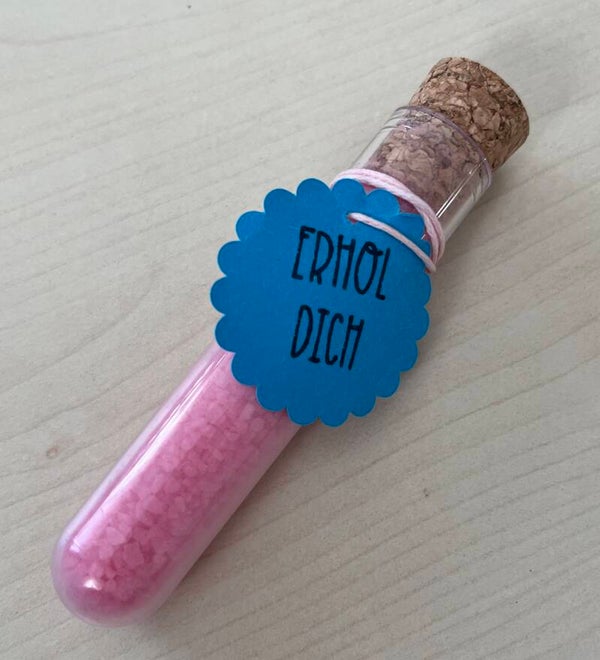 Reagenzgläschen Badesalz Erhol Dich